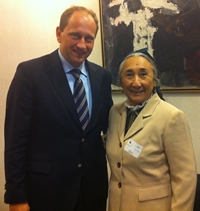 25.09. 2012 „Eine beeindruckende Persönlicheit,“ sagte Lambsdorff nach dem heutigen Treffen mit der chinesischen Menschenrechtsaktivistin Rebihya Kadeer. Die im Exil lebende Anführerin der Uigurischen Minderheit war heute nach Brüssel gekommen, um auf das Schicksal ihrer Volksgruppe aufmerksam zu machen. „Frau Kadeer hat mich gebeten, dass sie ihre Position bei einer Anhörung im Europäischen Parlament darstellen darf. Ich werde mich bei meinen Kollegen dafür einsetzen, um ihr diese zu ermöglichen.“ Mehr Informationen zu Rebihya Kadeer finden Sie z.B. hier in der Wikipedia. (CvM)