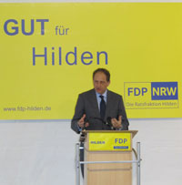 14.01.2011 „Die Wirtschaft wächst, der Export steigt, die Steuereinnahmen sprudeln, die Neuverschuldung ist um 2/3 geringer als im Haushaltsentwurf vorgesehen," sagte Lambsdorff beim Neujahrsempfang der FDP in Hilden. „Irgendwas muss diese Bundesregierung - an der die FDP maßgeblich beteiligt ist - doch richtig machen!" Es sei nun an der Zeit die Erfolge auch den Bürgerinnen und Bürgern zu mitzuteilen. „Haben Sie den Mut und erzählen Sie es!" (sd) |